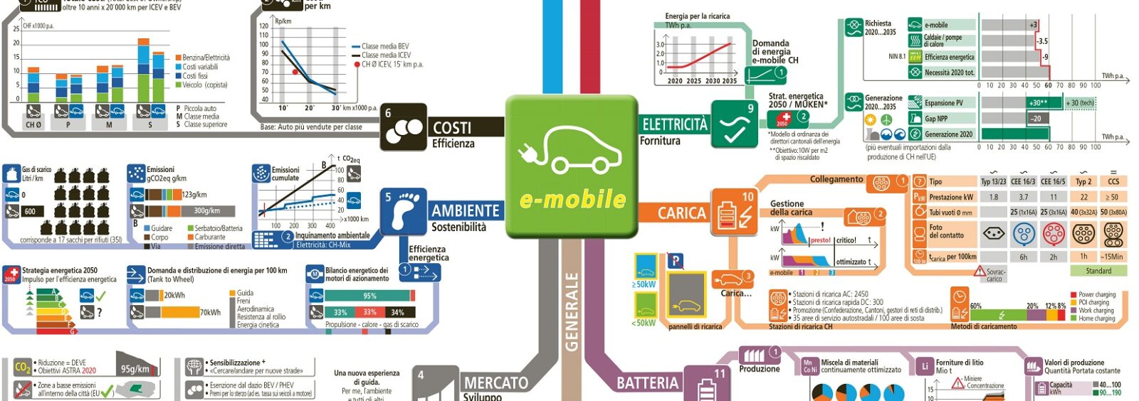 Electrosuisse hat mit Unterstützung von EnergieSchweiz zum Thema Elektromobilität eine Map, eine begleitende Broschüre und ein interaktives Tool zur Verknüpfung der beiden Elemente entwickelt. Die Map bietet strukturierte Informationen und ermöglicht so die einfache Anwendung abstrakten Wissens auf konkrete Fragestellungen.